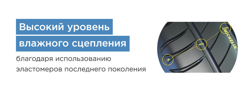 Она обеспечивает оптимальный уровень сцепления на мокрой поверхности на протяжении всего срока службы, что разработчиками Michelin было мастерски совмещено с долговечностью шины.